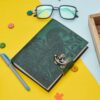 vintage handmade leather journal. Crafted with genuine leather, it radiates authenticity and charm, perfect for those who appreciate classic craftsmanship. The premium antique lock closure adds a touch of elegance and security, ensuring your thoughts and memories are safeguarded within its pages. Inside, you’ll discover 200 White handmade pages, providing ample space for your musings, sketches, and stories to unfold. Whether it’s for journaling, sketching, or planning, this versatile journal is a timeless companion for your creative endeavors. Treat yourself or a loved one to this exquisite piece, a celebration of tradition and creativity